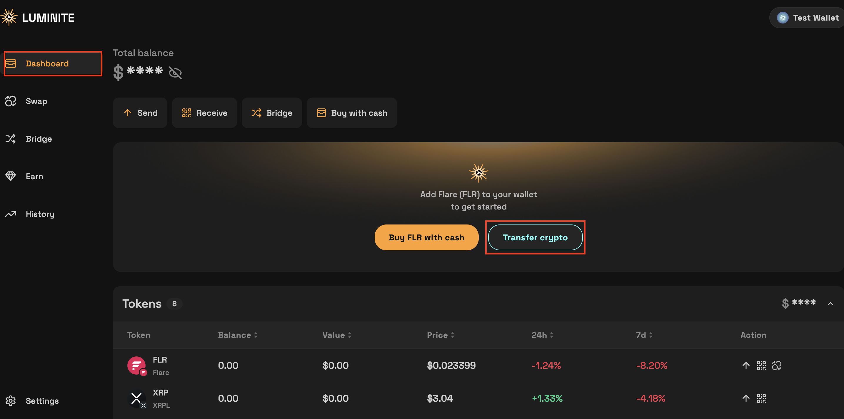 <mark style="color:$warning;">**Stay Cautious:**</mark> <mark style="color:$warning;"></mark><mark style="color:$warning;">Always verify you choose the correct chain and asset when sending assets to your Luminite Wallet. Assets not supported on Flare Mainnet or assets sent on the wrong chain/to the wrong Address may be lost forever. Luminite is not liable for incorrect transactions made to Luminite Wallet, and can not recover any wrongly sent funds.</mark>